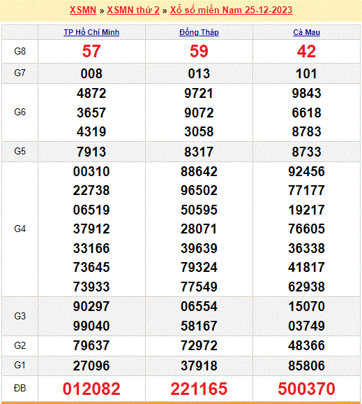 Mời mọi người cùng xem lại kết quả xổ số miền Nam tuần trước ngày 25-12-2023