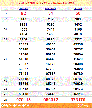 Mời mọi người cùng xem lại kết quả xổ số miền Nam tuần trước ngày 23-02-2024