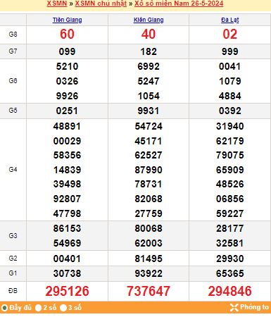 Mời mọi người cùng xem lại kết quả xổ số miền Nam tuần trước ngày 26-05-2024