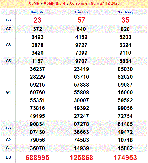 Mời mọi người cùng xem lại kết quả xổ số miền Nam tuần trước ngày 27-12-2023