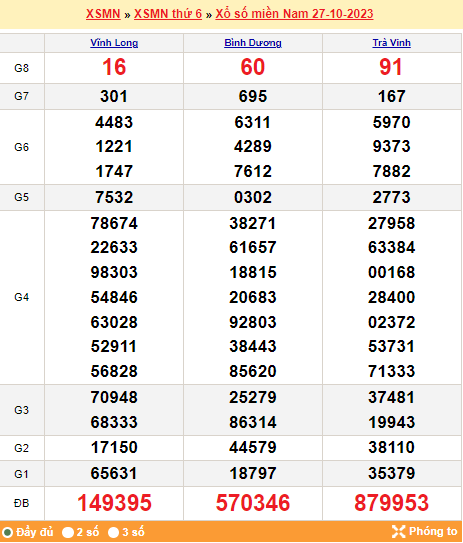 Mời mọi người cùng xem lại kết quả xổ số miền Nam tuần trước ngày 27-10-2023