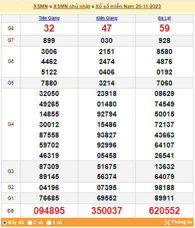 Mời mọi người cùng xem lại kết quả xổ số miền Nam tuần trước ngày 26-11-2023