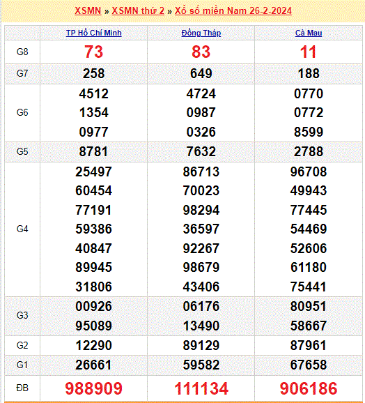 Mời mọi người cùng xem lại kết quả xổ số miền Nam tuần trước ngày 26-02-2024
