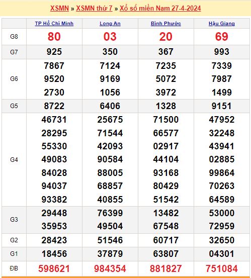 Mời mọi người cùng xem lại kết quả xổ số miền Nam tuần trước ngày 27-04-2024