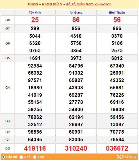 Mời mọi người cùng xem lại kết quả xổ số miền Nam tuần trước ngày 28-09-2023