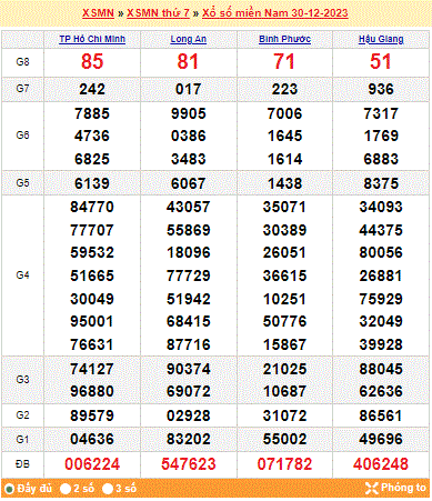 Mời mọi người cùng xem lại kết quả xổ số miền Nam tuần trước ngày 30-12-2023