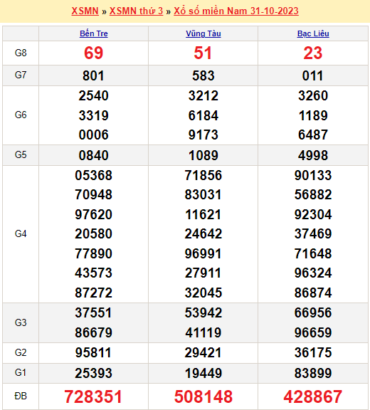 Mời mọi người cùng xem lại kết quả xổ số miền Nam tuần trước ngày 31-10-2023