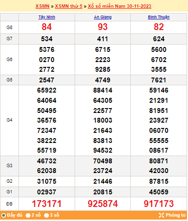 Mời mọi người cùng xem lại kết quả xổ số miền Nam tuần trước ngày 30-11-2023