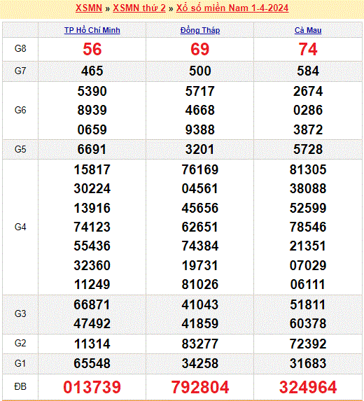 Mời mọi người cùng xem lại kết quả xổ số miền Nam tuần trước ngày 01-04-2024