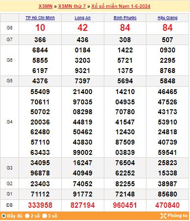Mời mọi người cùng xem lại kết quả xổ số miền Nam tuần trước ngày 01-06-2024
