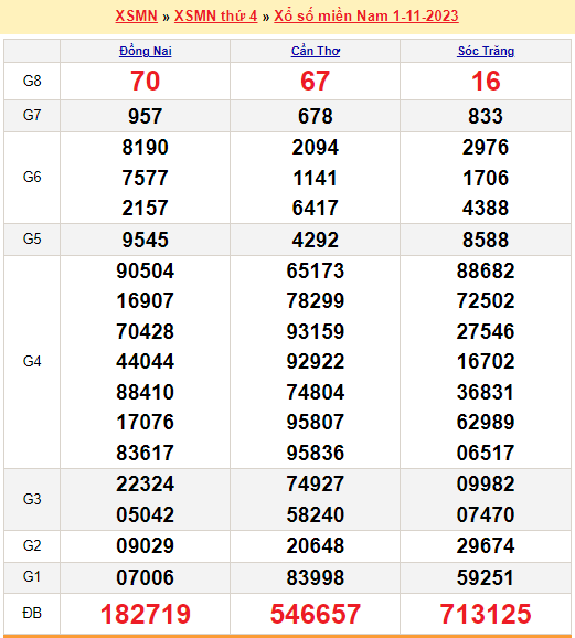 Mời mọi người cùng xem lại kết quả xổ số miền Nam tuần trước ngày 01-11-2023
