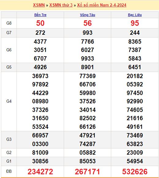 Mời mọi người cùng xem lại kết quả xổ số miền Nam tuần trước ngày 02-04-2024