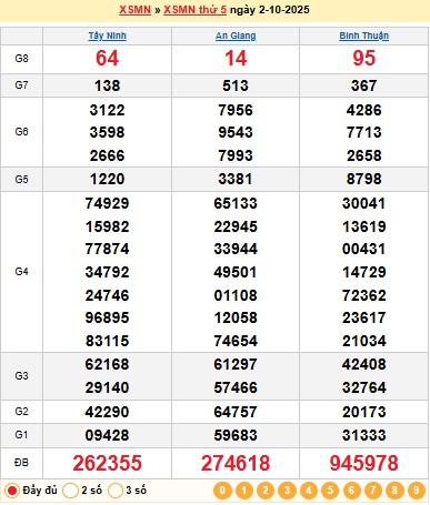 Mời mọi người cùng xem lại kết quả xổ số miền Nam tuần trước ngày 02-10-2025