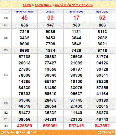 Mời mọi người cùng xem lại kết quả xổ số miền Nam tuần trước ngày 02-12-2023