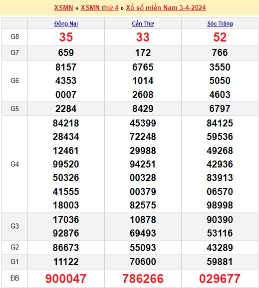 Mời mọi người cùng xem lại kết quả xổ số miền Nam tuần trước ngày 03-04-2024
