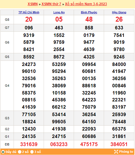 Mời mọi người cùng xem lại kết quả xổ số miền Nam tuần trước ngày 03-06-2023