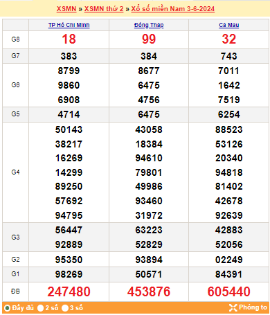 Mời mọi người cùng xem lại kết quả xổ số miền Nam tuần trước ngày 03-06-2024