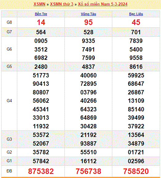 Mời mọi người cùng xem lại kết quả xổ số miền Nam tuần trước ngày 05-03-2024