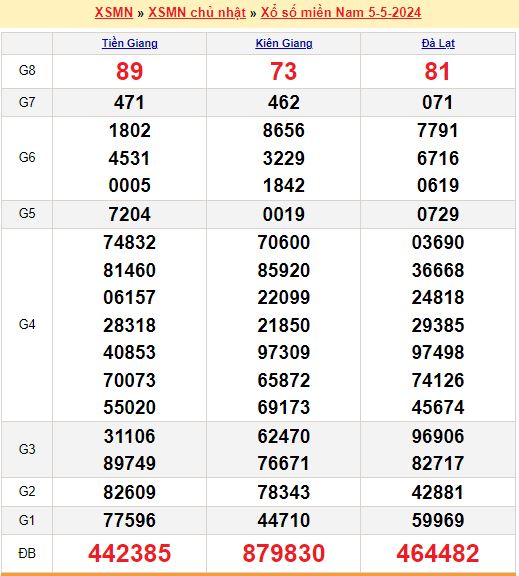 Mời mọi người cùng xem lại kết quả xổ số miền Nam tuần trước ngày 05-05-2024
