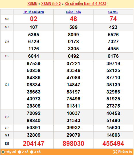 Mời mọi người cùng xem lại kết quả xổ số miền Nam tuần trước ngày 05-06-2023