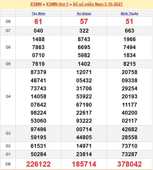 Mời mọi người cùng xem lại kết quả xổ số miền Nam tuần trước ngày 05-10-2023