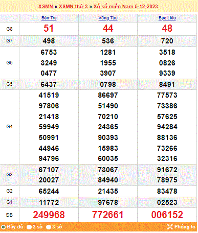Mời mọi người cùng xem lại kết quả xổ số miền Nam tuần trước ngày 05-12-2023