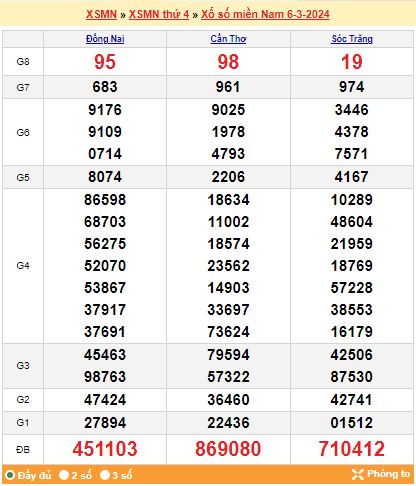 Mời mọi người cùng xem lại kết quả xổ số miền Nam tuần trước ngày 06-03-2024