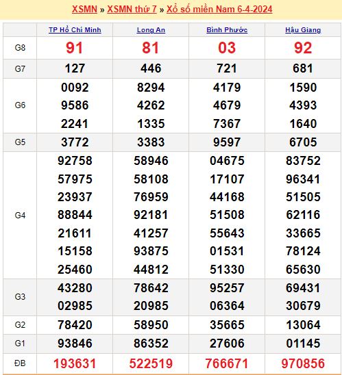 Mời mọi người cùng xem lại kết quả xổ số miền Nam tuần trước ngày 06-04-2024