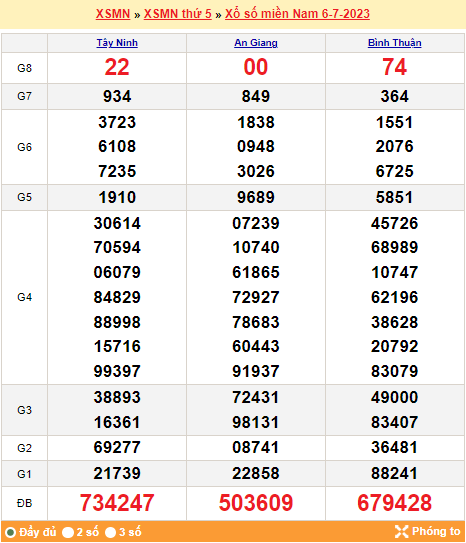 Mời mọi người cùng xem lại kết quả xổ số miền Nam tuần trước ngày 06-07-2023
