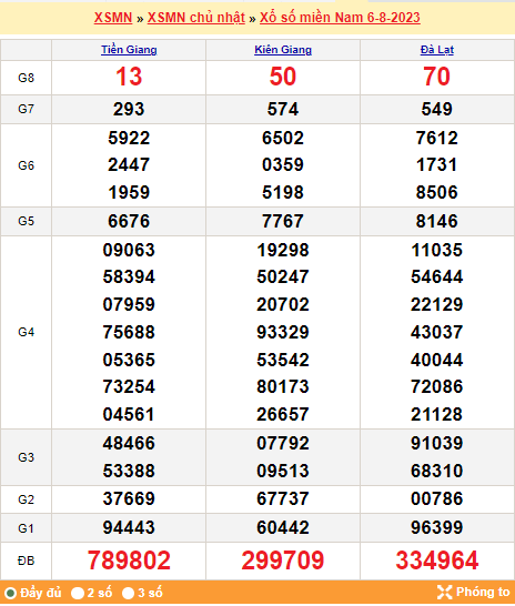 Mời mọi người cùng xem lại kết quả xổ số miền Nam tuần trước ngày 06-08-2023
