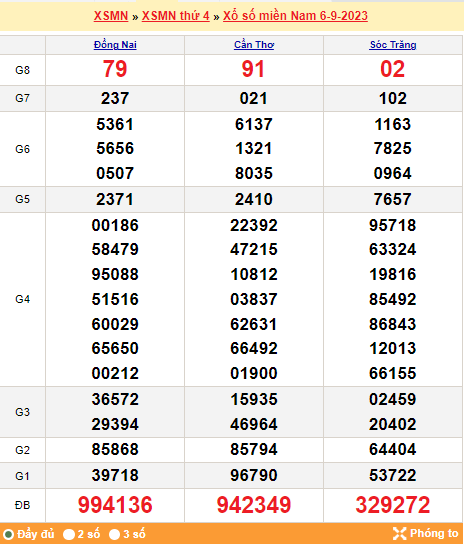 Mời mọi người cùng xem lại kết quả xổ số miền Nam tuần trước ngày 06-09-2023