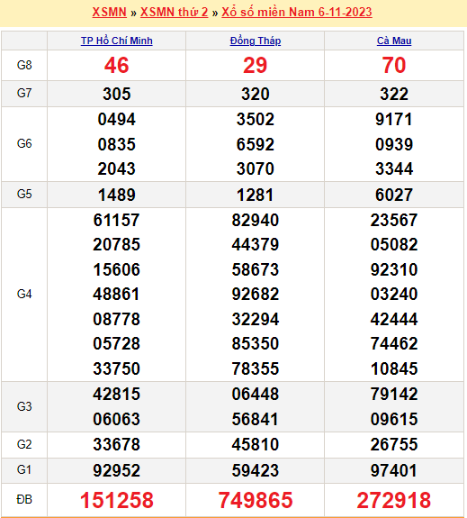 Mời mọi người cùng xem lại kết quả xổ số miền Nam tuần trước ngày 06-11-2023