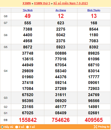 Mời mọi người cùng xem lại kết quả xổ số miền Nam tuần trước ngày 07-09-2023
