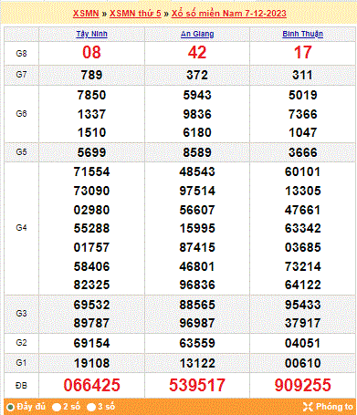 Mời mọi người cùng xem lại kết quả xổ số miền Nam tuần trước ngày 07-12-2023