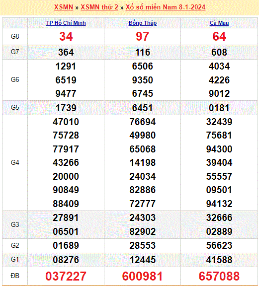 Mời mọi người cùng xem lại kết quả xổ số miền Nam tuần trước ngày 08-01-2024