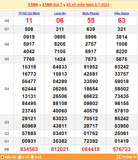 Mời mọi người cùng xem lại kết quả xổ số miền Nam tuần trước ngày 08-07-2023