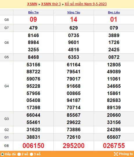 Mời mọi người cùng xem lại kết quả xổ số miền Nam tuần trước ngày 09-05-2023