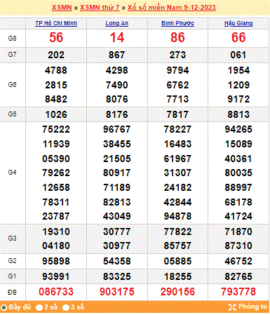Mời mọi người cùng xem lại kết quả xổ số miền Nam tuần trước ngày 09-12-2023