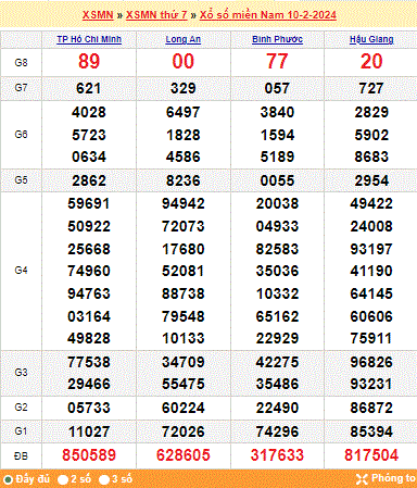Mời mọi người cùng xem lại kết quả xổ số miền Nam tuần trước ngày 10-02-2024