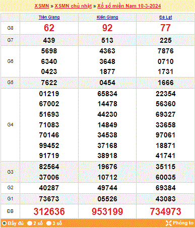 Mời mọi người cùng xem lại kết quả xổ số miền Nam tuần trước ngày 10-03-2024