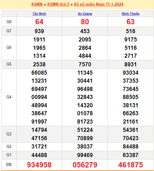 Mời mọi người cùng xem lại kết quả xổ số miền Nam tuần trước ngày 11-01-2024