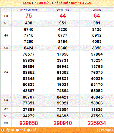 Mời mọi người cùng xem lại kết quả xổ số miền Nam tuần trước ngày 11-03-2024