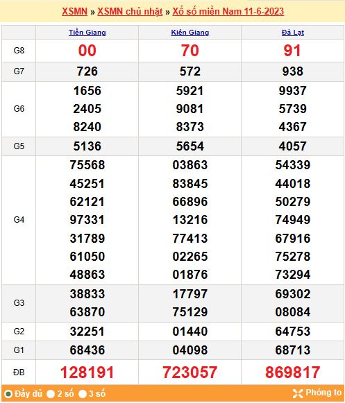 Mời mọi người cùng xem lại kết quả xổ số miền Nam tuần trước ngày 11-06-2023
