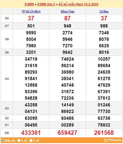 Mời mọi người cùng xem lại kết quả xổ số miền Nam tuần trước ngày 12-02-2024