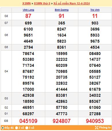 Mời mọi người cùng xem lại kết quả xổ số miền Nam tuần trước ngày 12-04-2024