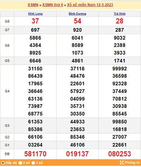 Mời mọi người cùng xem lại kết quả xổ số miền Nam tuần trước ngày 12-05-2023