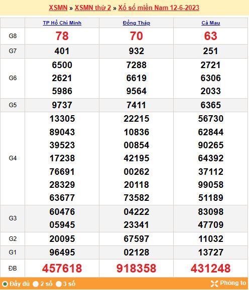 Mời mọi người cùng xem lại kết quả xổ số miền Nam tuần trước ngày 12-06-2023