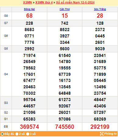 Mời mọi người cùng xem lại kết quả xổ số miền Nam tuần trước ngày 12-06-2024