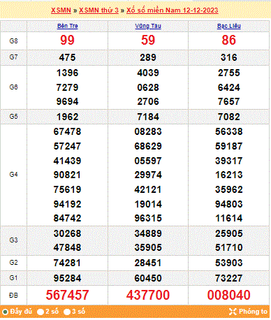 Mời mọi người cùng xem lại kết quả xổ số miền Nam tuần trước ngày 12-12-2023