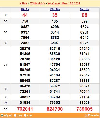 Mời mọi người cùng xem lại kết quả xổ số miền Nam tuần trước ngày 13-02-2024